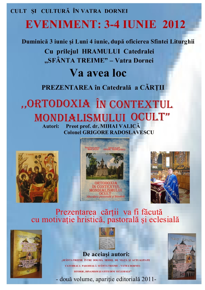 Un răspuns la „„Ortodoxia in contextul mondialismului ocult”: Prezentare de carte – Eveniment – Vatra Dornei – Pr. prof.dr. Mihai Valica”